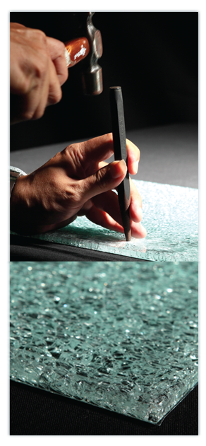 A form of safety glass as it breaks into small pieces instead of large shards which reduces major injuries.